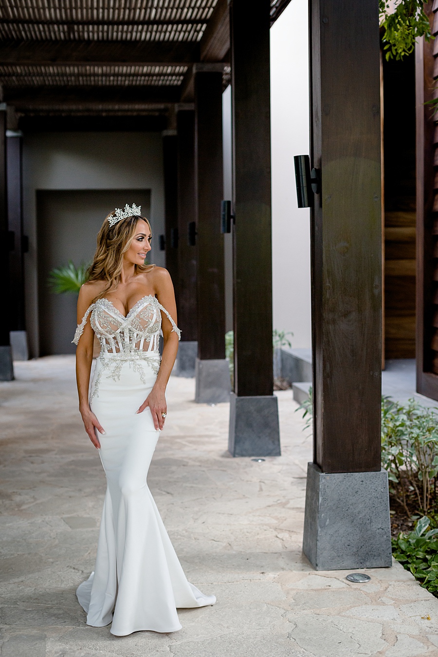 Modern mermaid gown with bold curves and chic glam in the Riviera Maya.