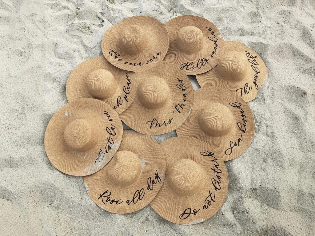A floppy sunhat is something your girls will totally need and may have forgotten to pack — now everyone can enjoy the beach and remain sunburn-free. In addition to being practical destination wedding bridesmaid gifts, these personalized floppy hats make for great photo ops!